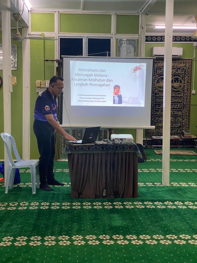 Hari Kesedaran Malaria telah berlangsung pada 14 Julai 2024 di Madrasah Al-Jama’iah Batu 23, Sg. Lui. Program ini bermula pada jam 9.00 pagi dan dihadiri oleh YDH Dato’ Haji Rosli bin Othman, Ahli Majlis MPKj beserta dengan Dr. Zailiza bt. Suli (Pegawai Kesihatan Daerah Hulu Langat) dengan anggaran penyertaan sebanyak 100 orang.