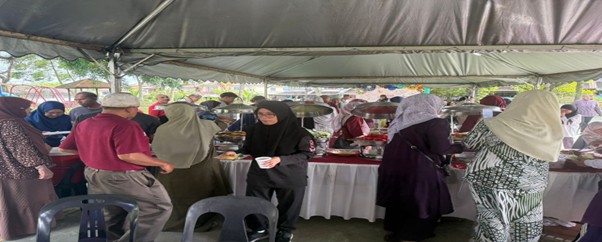 Pelbagai juadah tradisional seperti rendang, ketupat, lemang, sate, dan kuih-muih disajikan hasil sumbangan serta gotong-royong warga taman. Selain menjamu selera, acara turut diserikan dengan persembahan kebudayaan, ucapan penghargaan, dan sesi bergambar kenangan.