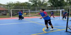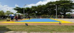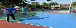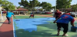 • Mengecat: Mengecat semula garisan gelanggang, tiang jaring serta bangku penonton.